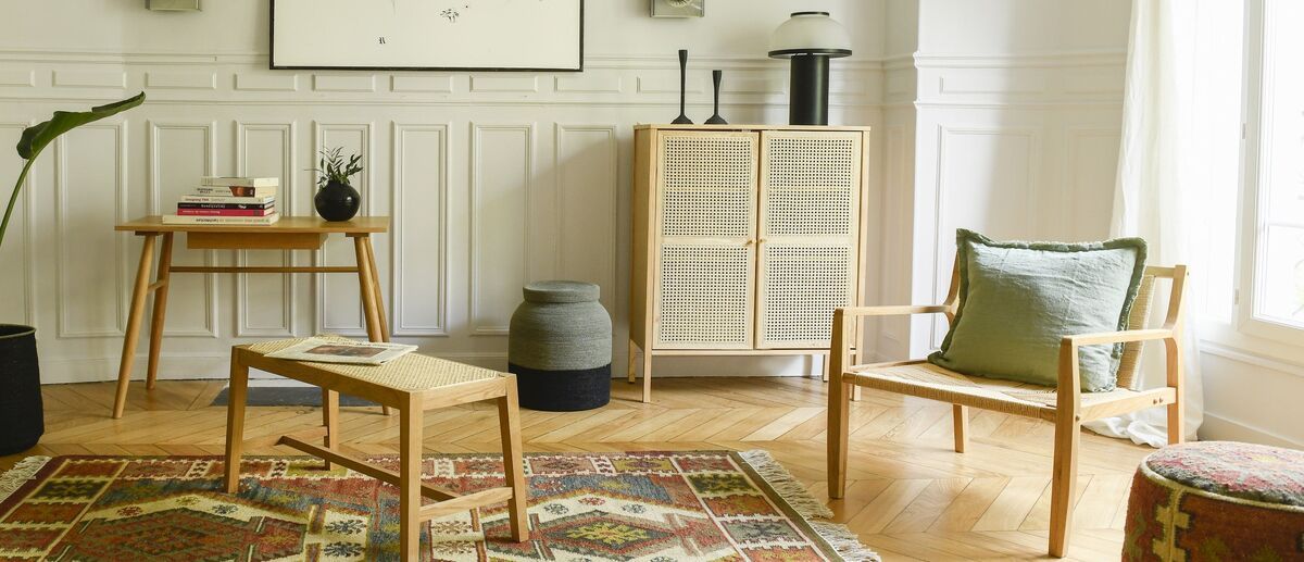 A la hora de decorar, el mimbre es un elemento imprescindible que aporta un cierto encanto a nuestros interiores. Apreciado por su carácter auténtico y natural, nos encanta la idea de un material ligero, elegante y artesanal. Te encantará la combinación de roble robusto y bonitas puertas de caña caladas en un aparador, mientras que la caña aporta una luz especial a una lámpara colgante aireada y transparente, y lo mismo ocurre con un tarro para velas... El terciopelo, la madera y otros materiales naturales serán sus aliados.