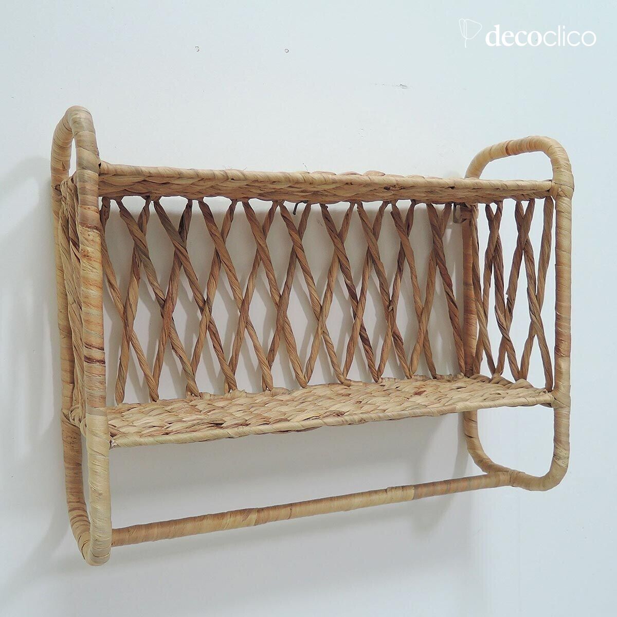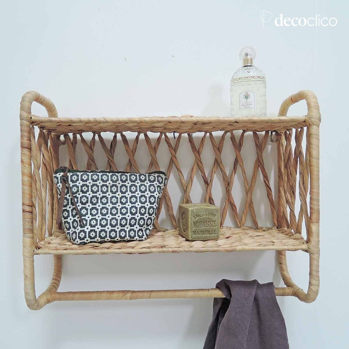 Estantería de pared doble de madera de avellano, ideal para aportar un toque bohemio a tu hogar. Nos encanta su espíritu natural y su formato compacto, que la convierte en una estantería fácil de integrar en todas las estancias de la casa. En el dormitorio de los niños o en el cuarto de baño, permite guardar cosas, pero también colgarlas gracias a su barra en la parte inferior. Una estantería original que cambia de las estanterías de ratán vintage, pero que será igual de moderna decorando tus paredes.