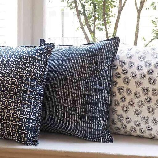 Para alegrar su interior, estos cojines de algodón con estampado de bloques son ideales.
