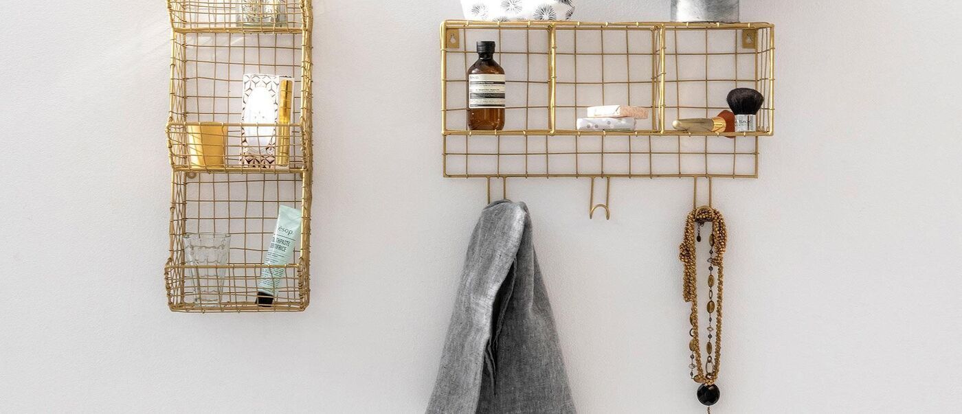 ¿Conoces la colección Greed? Estantes de alambre en gris antracita u oro mate. De 3 a 5 compartimentos, con o sin ganchos, estas estanterías murales se prestan a todo tipo de interpretaciones. En la cocina o el baño, en un dormitorio, en el pasillo... son útiles, prácticas y bonitas, y se desplazan fácilmente de una habitación a otra según le lleve su imaginación. Variaciones de 2 estanterías Greed. Vídeo de inspiración.