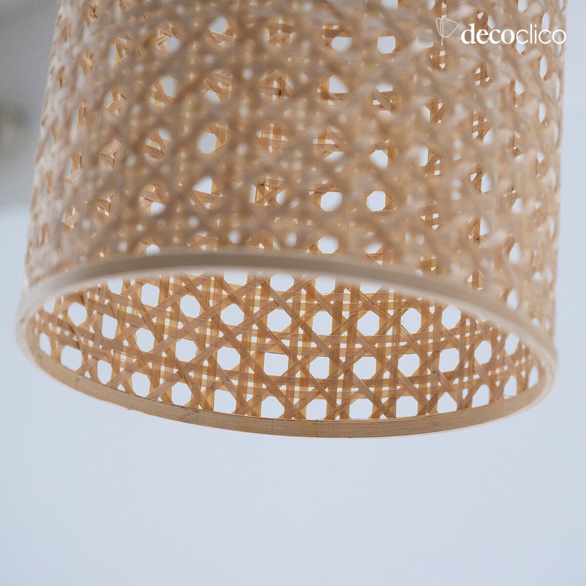Lámpara de suspensión cilíndrica de bambú natural fabricada artesanalmente. Nos encanta la delicadeza del mimbre que, una vez iluminado, proyecta bonitos sombras en la pared y crea inmediatamente un ambiente cálido y acogedor. Se entrega sin electrificar, por lo que podrá elegir el cable que le dé carácter: de yute o de color, usted elige la composición de su lámpara ideal. Esta lámpara colgante quedará genial en el salón, en el dormitorio o sobre la isla central de la cocina si se colocan varias.