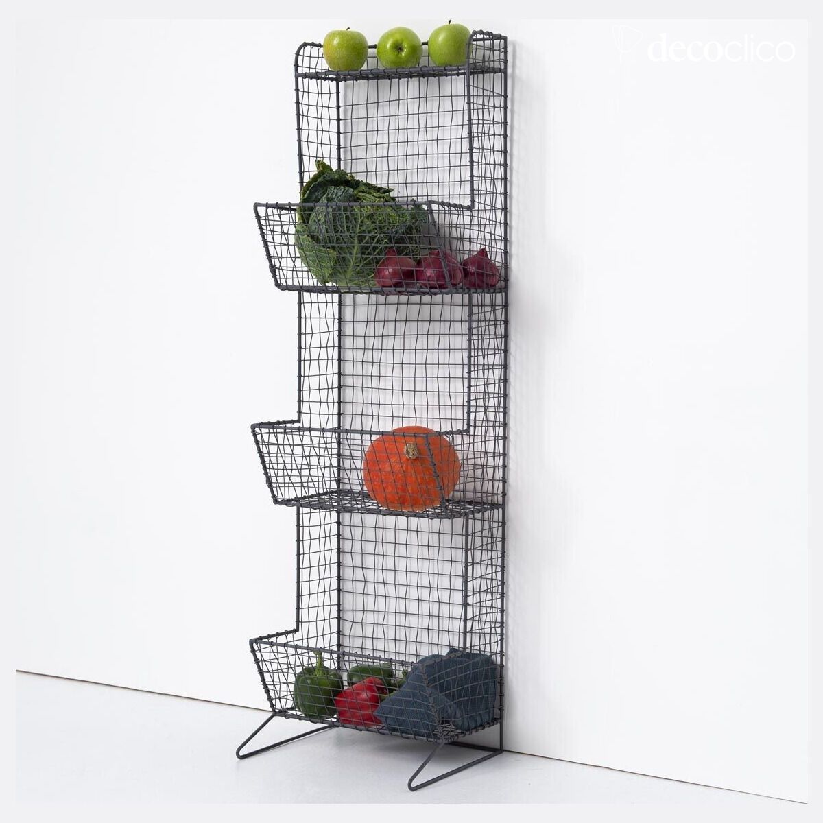 • Set de 3 paniers suspendus en métal grillagé anthracite Greed